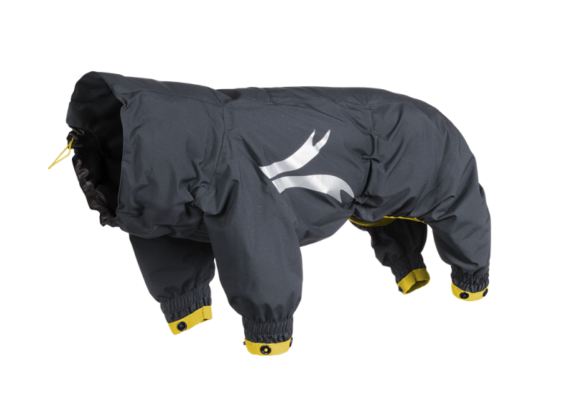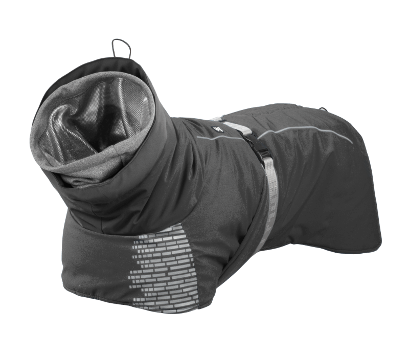 A ruha belsejében lévő hővisszaverő fólia tükrözi a kutya testhőjét, jelentős védelmet nyújtva ezzel neki. A kabátot úgy tervezték, hogy védelmet nyújtson a kutya legfontosabb izomcsoportjainak, és a vízhatlan felületi anyag lágy és kényelmes. A nagyméretű kámzsa melegíti a kutya nyakát, és a fül védelmére feljebb húzható. A jól látható 3M-es fényvisszaverők javítják a biztonságot sötétben is.